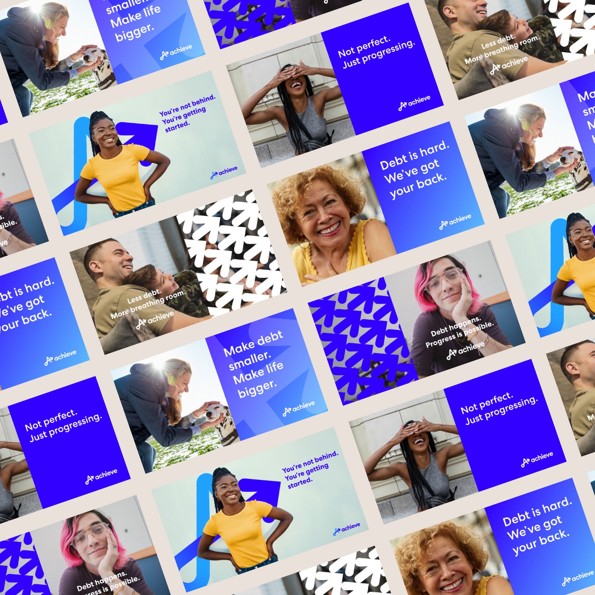 Freedom Financial Network had been around for two decades, but its branding didn’t reflect that maturity. Visual identity was inconsistent across teams and channels, assets were often created as one-offs, and there wasn’t a central system to enforce cohesion. As the company rebranded to Achieve, the work needed to do more than look new—it needed to function as a scalable foundation for a modern, trustworthy consumer brand.