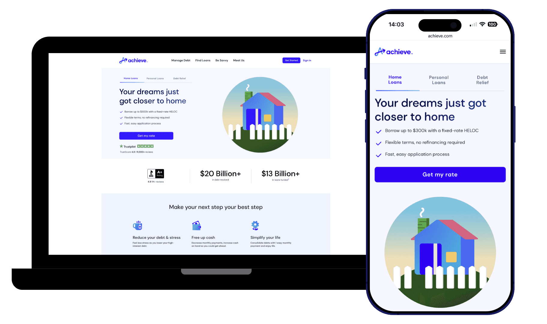 Achieve offers digital financial solutions (debt relief, personal loans, home equity). During the brand transition, core identity elements were evolving (logo, typography, voice), but illustration had no unified direction—despite being needed everywhere: product flows, Achieve.com, mobile apps, lifecycle marketing, social, comms, employer brand, and photo pairings.