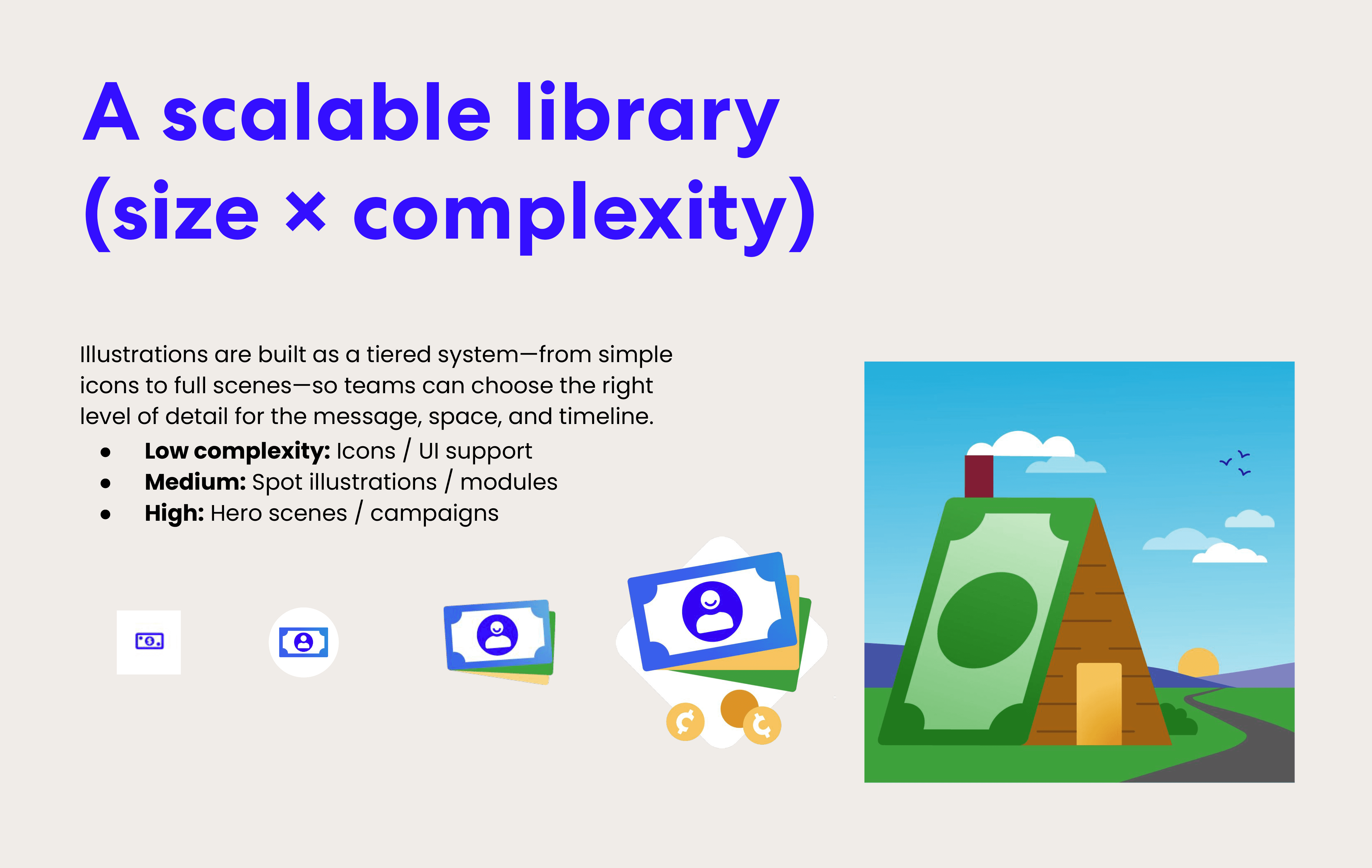 Illustration System — unified style + scalable library for cross-team, multi-channel use