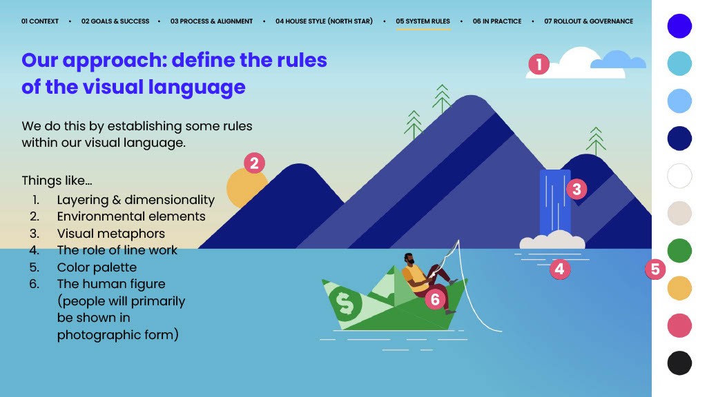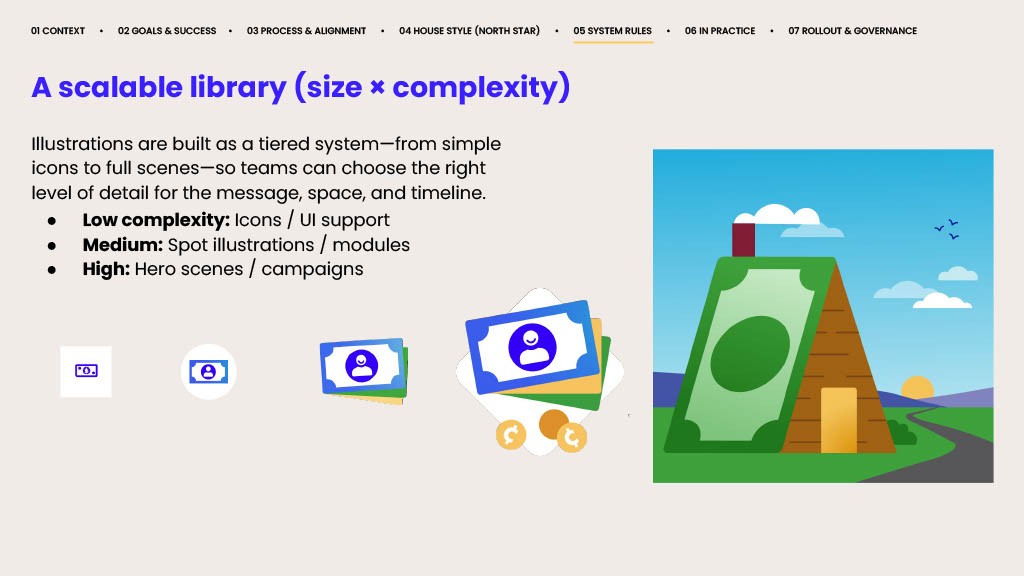 I translate brand guidelines into flexible presentation systems—with repeatable layouts, modular components, and clear usage patterns—so decks stay consistent even as they scale.