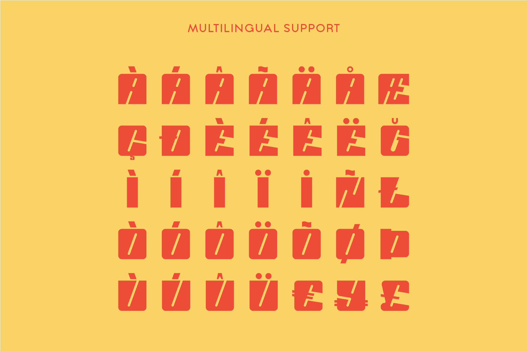 Features • Uppercase A–Z • Numerals 0–9 • Punctuation & symbols • Multilingual Latin support