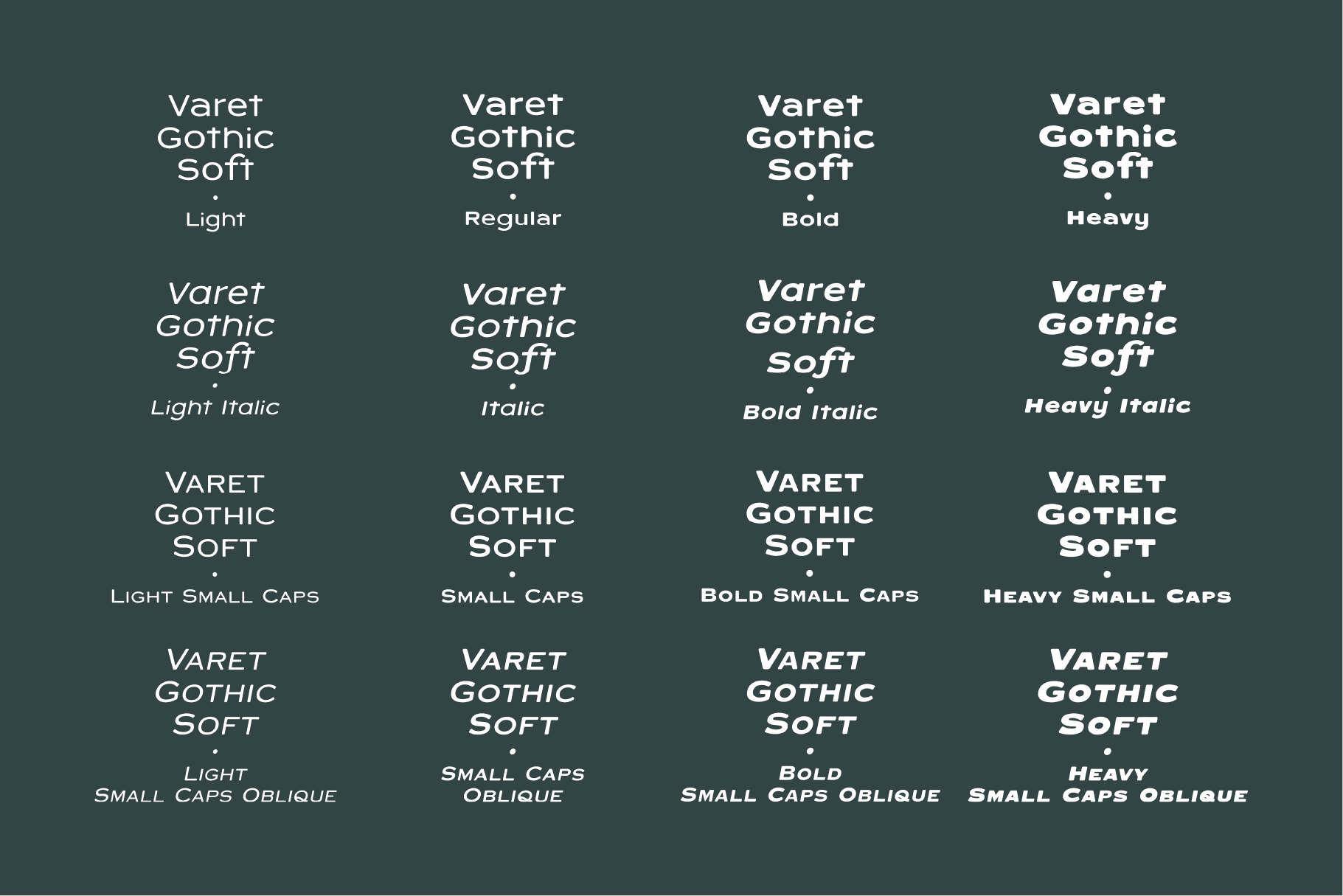 Varet Gothic Soft is a contemporary sans serif that blends industrial utility with humanist charm. Designed with gently rounded corners and subtle texture, it softens the rigidity of traditional grotesques, giving text a friendly, approachable tone without losing confidence or clarity.